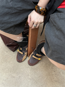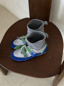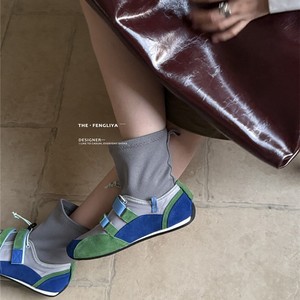 风莉雅小众设计浅口拼色复古风新款拼接针织短靴秋季女鞋平底袜靴