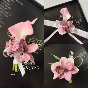 粉色系花新郎新娘胸花手腕花马蹄莲结婚礼仪庆典摄影西装襟花
