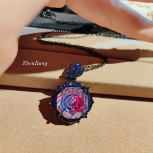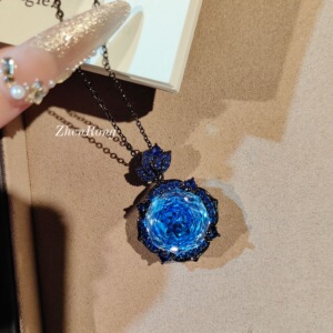 黑金八角千禧玫瑰切帕拉伊巴钻项链镶嵌高碳钻克莱因玫瑰花吊坠女
