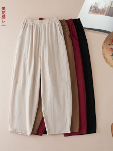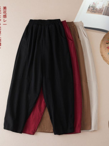 棉麻简约风文艺复古哈伦裤百搭休闲宽松遮肉显瘦裤子夏季新款女装