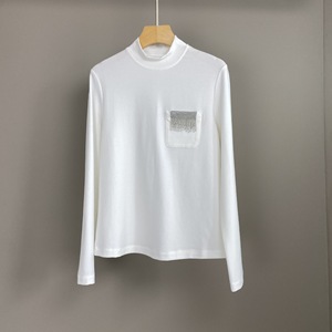 南油篙品2025秋冬新款BC链条流苏口袋半高领丝羊毛针织衫气质毛衣