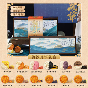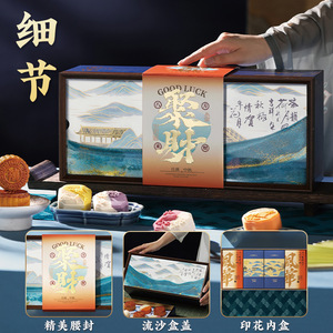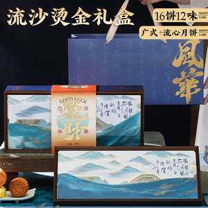 中秋月饼礼盒装广式桃山皮月饼高端木质古风流沙款礼盒中秋节送礼