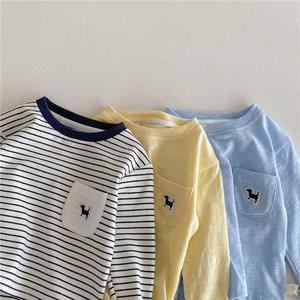 男女童长袖打底衫秋款韩国童装男宝宝洋气条纹T恤儿童秋装上衣