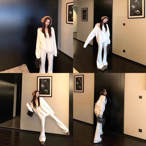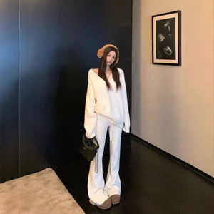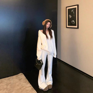 Skk Store 淡颜天菜 软糯针织V领上衣慵懒设计感毛衣休闲裤套装秋