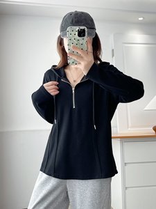 工厂直发复古半拉链连帽卫衣2025秋新款大码女装百搭休闲显瘦上衣