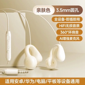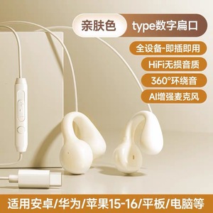 新款夹耳式typec3米无麦有线耳机高品质主播带麦耳机声卡电脑通用