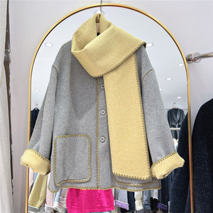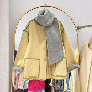 斯卡露双色两面穿围巾领手工双面呢羊绒大衣中长款宽松羊毛呢外套