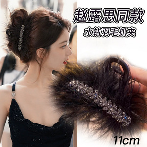 黑色银闪钻鸵鸟毛抓夹-8CM