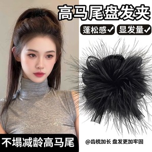 黑色羽毛高马尾固定抓夹女2025新款感半扎发鲨鱼夹子头饰