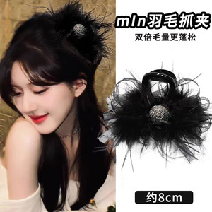 黑色金闪钻鸵鸟毛抓夹-8CM