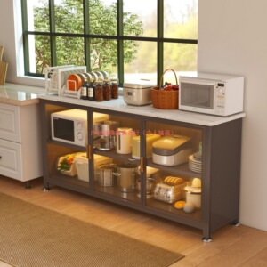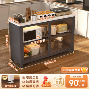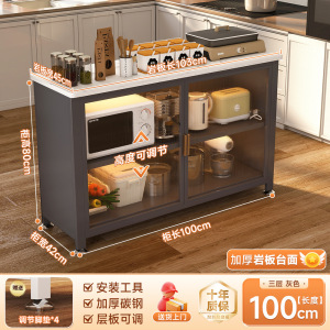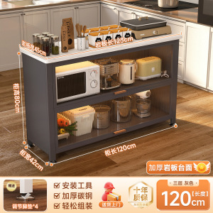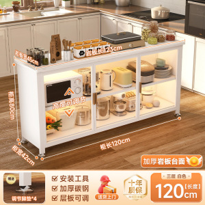 厨房置物架岩板操作台落地多层功能靠墙一体收纳柜餐边储物橱柜子