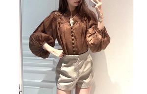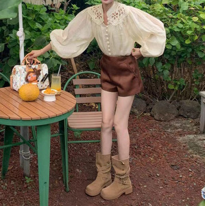 SourceWith1 刘亦菲同款 100苎麻镂空高质感棉麻长袖衬衫上衣