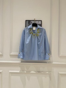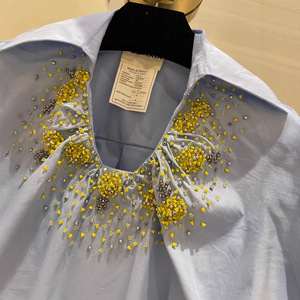 南油直供 25早秋时尚重工串珠立体花朵衬衣经典U型翻领金属扣上衣