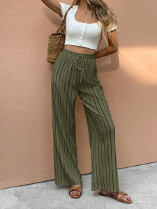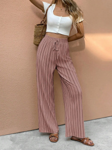 秋季厚款女式束带条纹直筒宽松裤,波西米亚风欧美跨境都市通勤