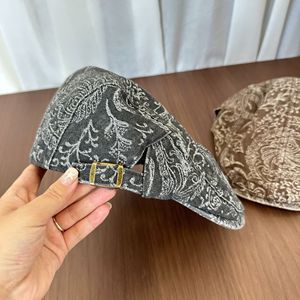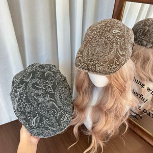港风复古腰果花刺绣前进帽女日系小众设计情侣休闲百搭鸭舌贝雷帽