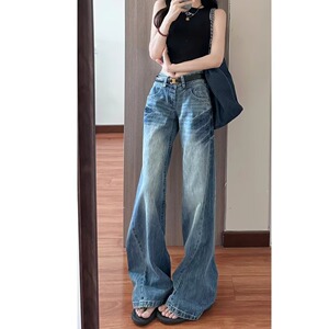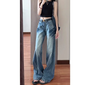 日系复古高腰潮牌垂感牛仔裤女秋季新款辣妹宽松垂感不贴腿直筒裤