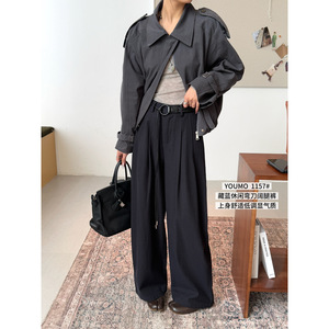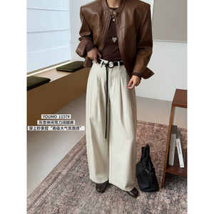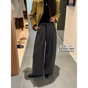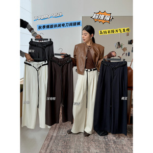 素心兰/YOUMO-休闲修身压褶工艺直筒裤配腰带休闲裤(配腰带)1157