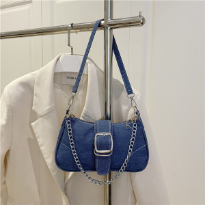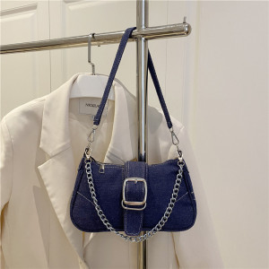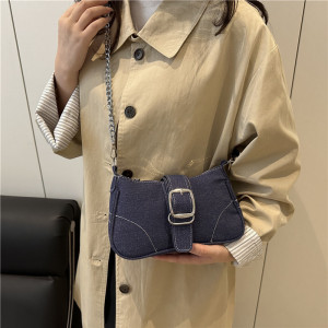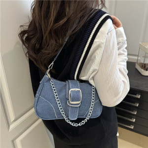 感牛仔小包包女2025新款欧美风时尚单肩斜挎包链条腋下法棍包