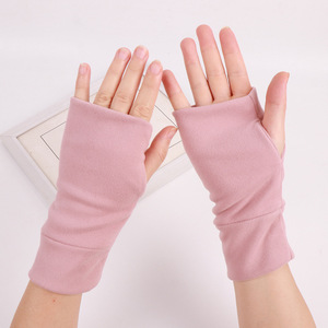 德绒保暖手套冬季加厚女半指学生写字骑车防寒男遮疤纹身手腕护套