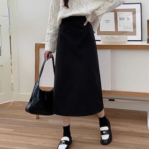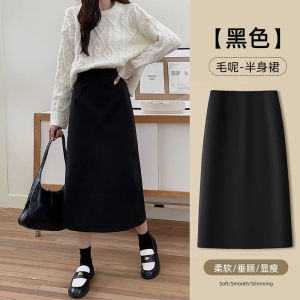 黑色毛呢半身裙女秋冬新款高腰显瘦感包臀字中长款裙子