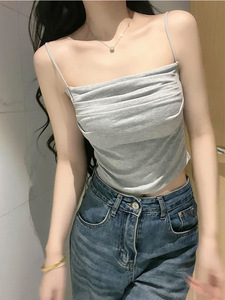 纯欲甜辣妹褶皱小吊带美背背心带胸垫裹胸修身打底显胸大抹胸上衣