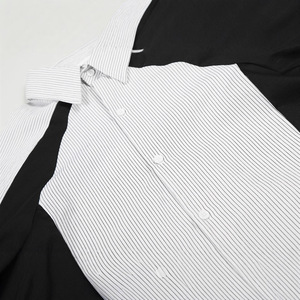 美式复古男士衬衫男款翻领条纹拼接长袖潮牌宽松新款百搭开衫衬衣
