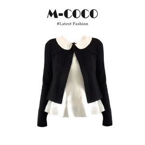 韩系高级感黑色针织开衫娃娃领打底衫上衣休闲裤三件套