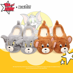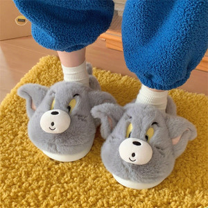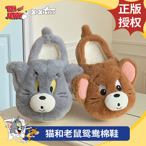 细细条 正版猫和老鼠汤姆杰瑞棉拖鞋男女冬可爱情侣保暖毛毛鞋ins