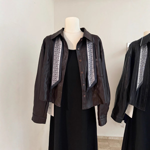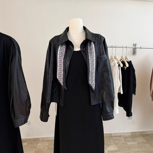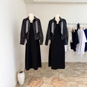秋季!!短款PU皮衣外套+中长款连衣裙两件套装