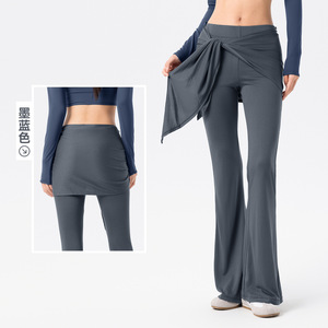 带屁帘微喇瑜伽裤可拆真两件普拉提健身长裤显瘦透气瑜伽喇叭裤女