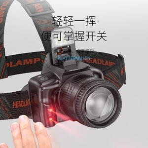 跨境多功能旋转变焦户外照明聚泛双光头灯挥手感应带电显红白光头