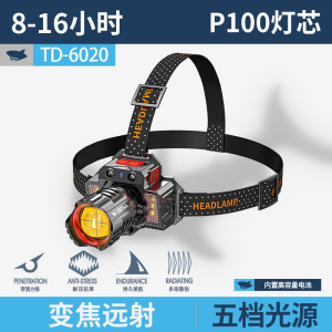 TD-0238变焦感应头灯【内置2节18650电池2400毫安】