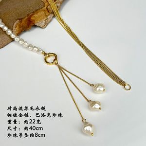 跨境时尚OL珍珠流苏毛衣链女轻奢小众项链高级感设计个性百搭饰品