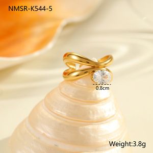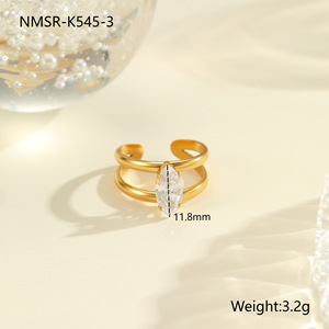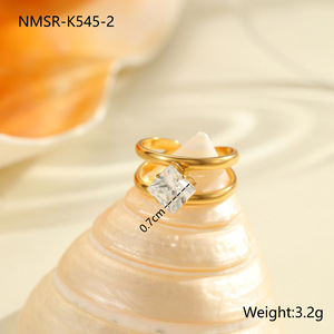 跨境秋冬新品ins镶嵌锆石戒指不锈钢戒指镀18K金时尚精致手饰批发