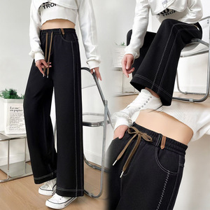 人字纹单宁风松紧腰牛仔裤女秋季上新高腰显瘦垂感百搭休闲裤2580