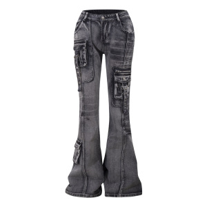 Fudge Pink 2025秋季New美式复古重工工装口袋洗水微喇牛仔长裤