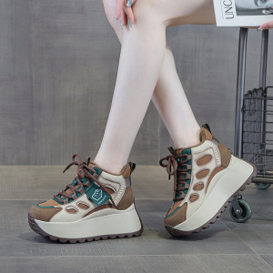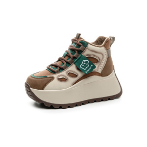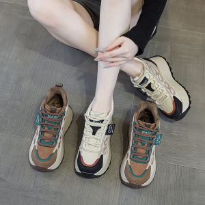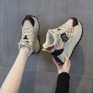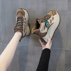 厚底老爹鞋女2025年新款网红爆款加绒高帮休闲时尚百搭小个子女鞋