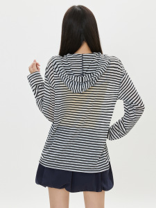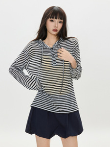 十三行·芸和鱼条纹帽衫2025新款长袖女舒适宽松百搭连帽卫衣女