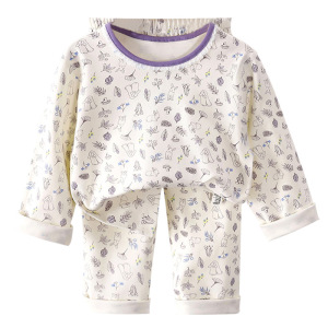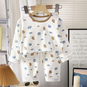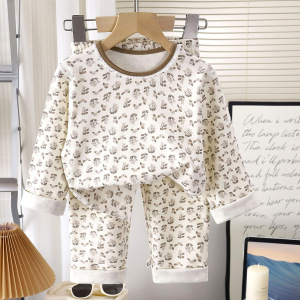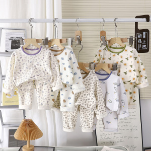 秋新款无骨纯棉低领居家服女童花边内衣套装男童彩棉贴身秋衣秋裤