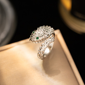铜塑跨境热销金属蛇头形戒指女开口百搭高档品质指环组厚实感手饰