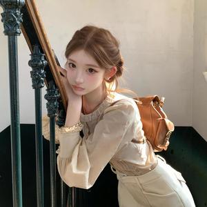 2025法式镂空蕾丝长袖衬衫上衣+百搭白色高腰短裤气质短款套装