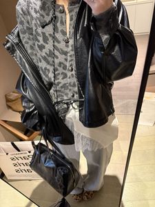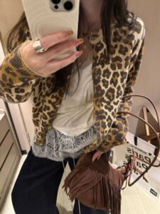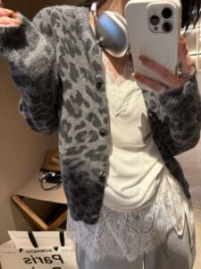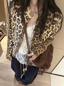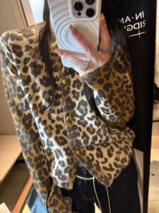 美式辣妹风金扣装饰豹纹印花针织开衫女2025秋冬内搭时尚毛衣