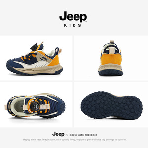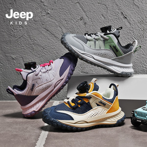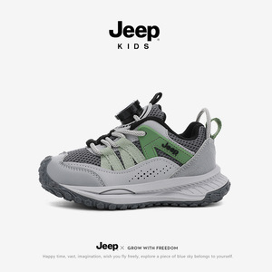 Jeep童鞋儿童户外纽扣鞋子男童2025新款轻便女童跑步鞋儿童运动鞋