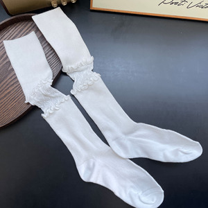 韩国东大门新品亚文化蕾丝拼接中筒少女韩系长款小腿过膝堆堆袜女