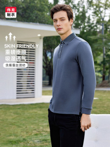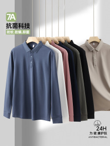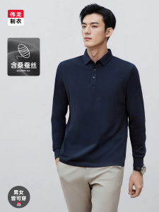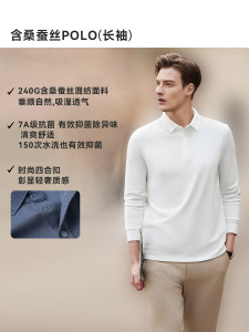 【含桑蚕丝】翻领长袖T恤男240G重磅休闲上衣秋装新款抗皱POLO衫
