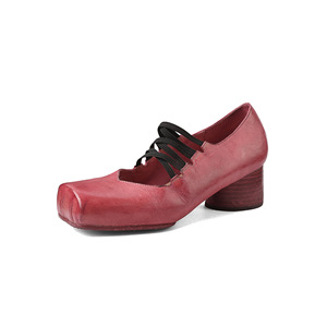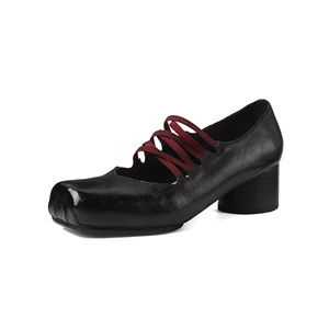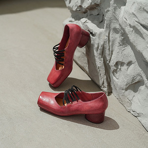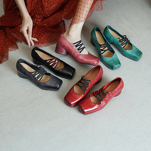 马皮真皮大底2025年春秋季方头单鞋女复古猪鼻子真皮芭蕾舞跳舞鞋