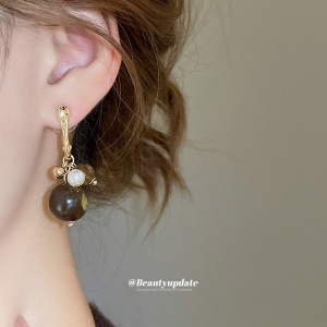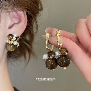银针锆石亚克力几何圆形吊坠耳环法式宫廷风耳钉轻奢高级感耳饰女
