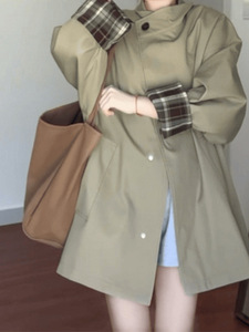 2025卡其风衣女中长修身简约通勤潮显瘦立领大衣卡其绿氨纶