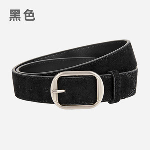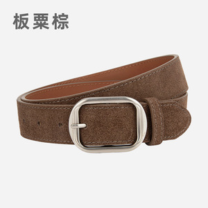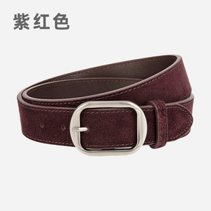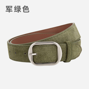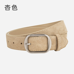 皮带女真皮磨砂反绒高级银色针扣百搭配牛仔裤带复古美式腰带女款