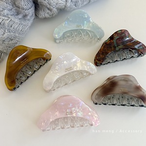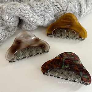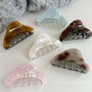 韩系秋冬拼接款醋酸鲨鱼夹三角款八爪夹通勤日常后脑勺盘发夹子女